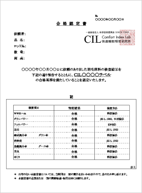 CIL品質基準に合格したもののみ、合格認定書 及び CILギャランティーラベルの発行が許可される。
